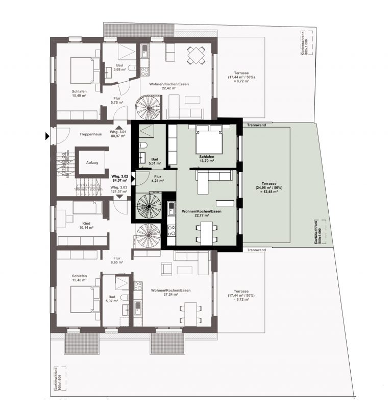 Nachhaltigkeit und Wohnkomfort stehen in der Planung im Mittelpunkt, um ein langlebiges und wertbeständiges Wohnumfeld zu schaffen, das sich an den Bedürfnissen der zukünftigen Eigentümer und Bewohner orientiert.